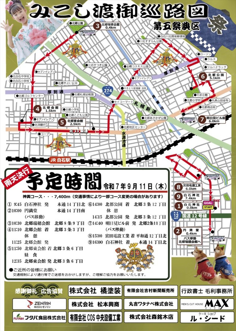 札幌市白石区本通14丁目にある白石神社で秋に開催されるお祭り秋季例大祭、今年2025年(令和7年)も開催予定です。開催日は周辺の道路などがたいへん混雑しますのでご注意下さい。